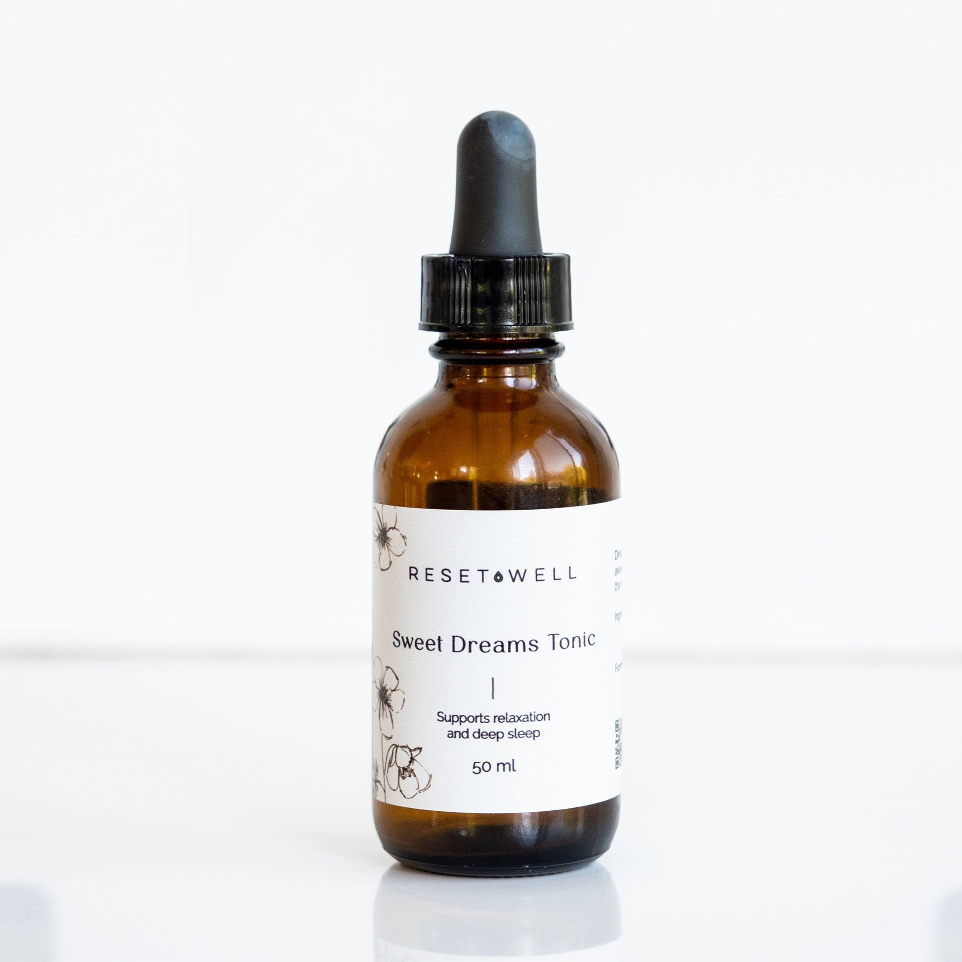 Unwind. Soothe. Drift into restful sleep. Designed as a gentle nighttime ritual, Sweet Dreams Sleep Tonic helps quiet the mind and relax the body, guiding you into a deep, restful sleep. Crafted with calming botanicals like Passion Flower and California Poppy, this non-habit-forming blend supports natural sleep cycles and soothes the nervous system. Whether you struggle with falling asleep or staying asleep, this tonic helps promote tranquil evenings and peaceful nights, allowing you to wake feeling refreshed, not groggy.
